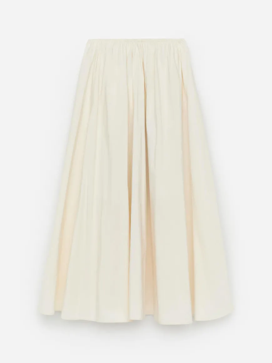 A-line skirt in a semi-shiny taffeta quality. This maxi skirt features gathers at the elasticated waistband. Pockets in side seams. Fully lined.