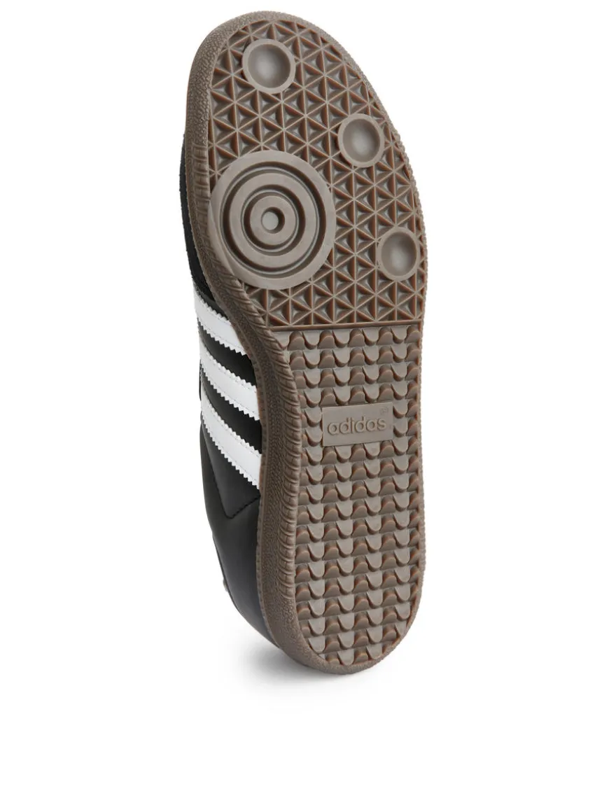The classic adidas Samba features a soft leather upper, suede overlays, serrated 3-Stripes and a gum rubber sole.
