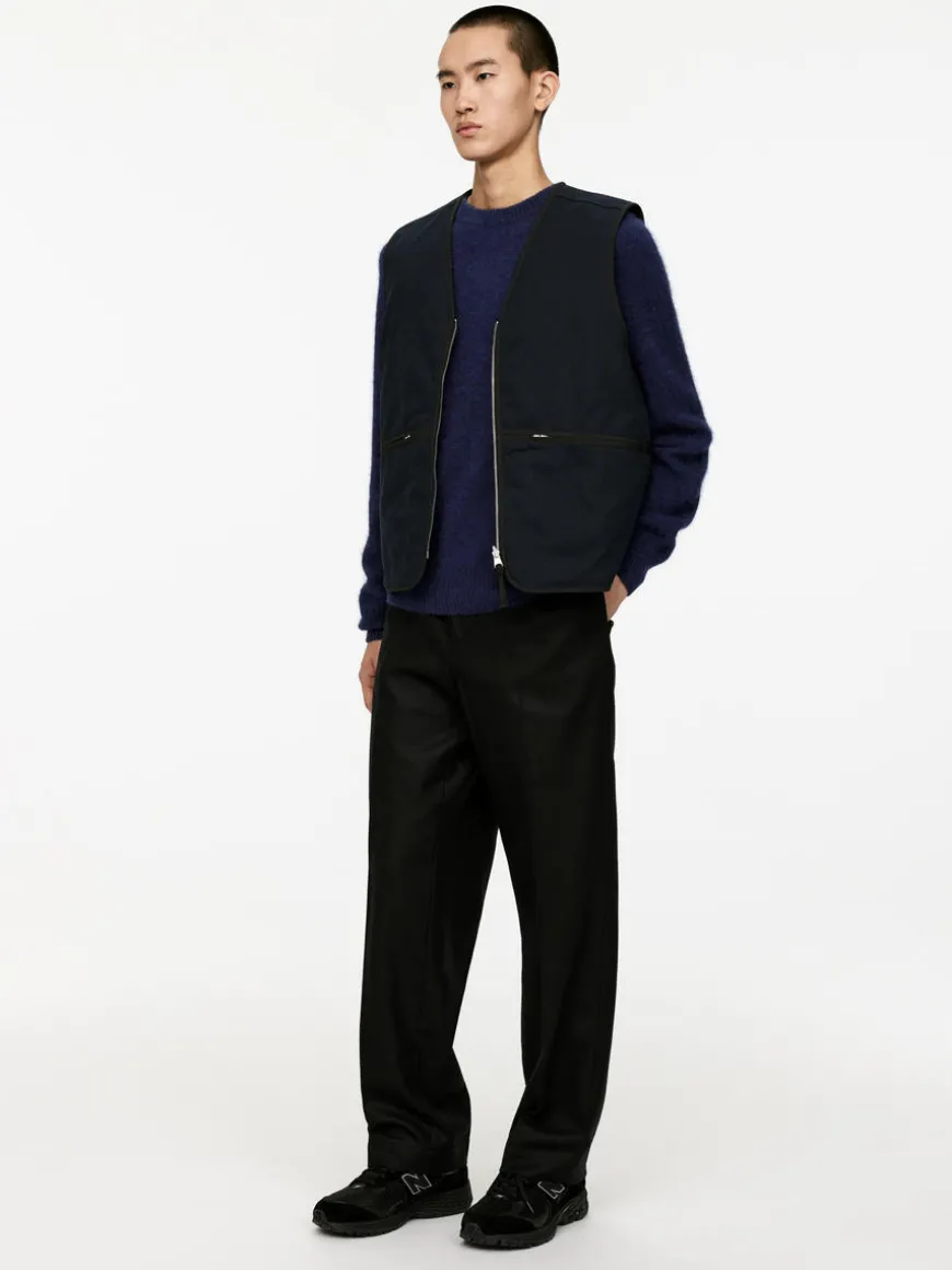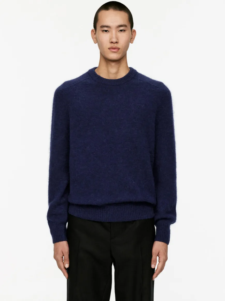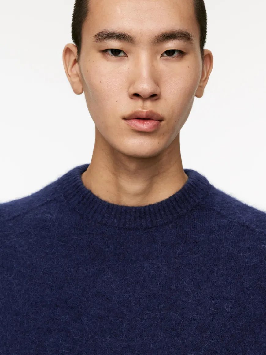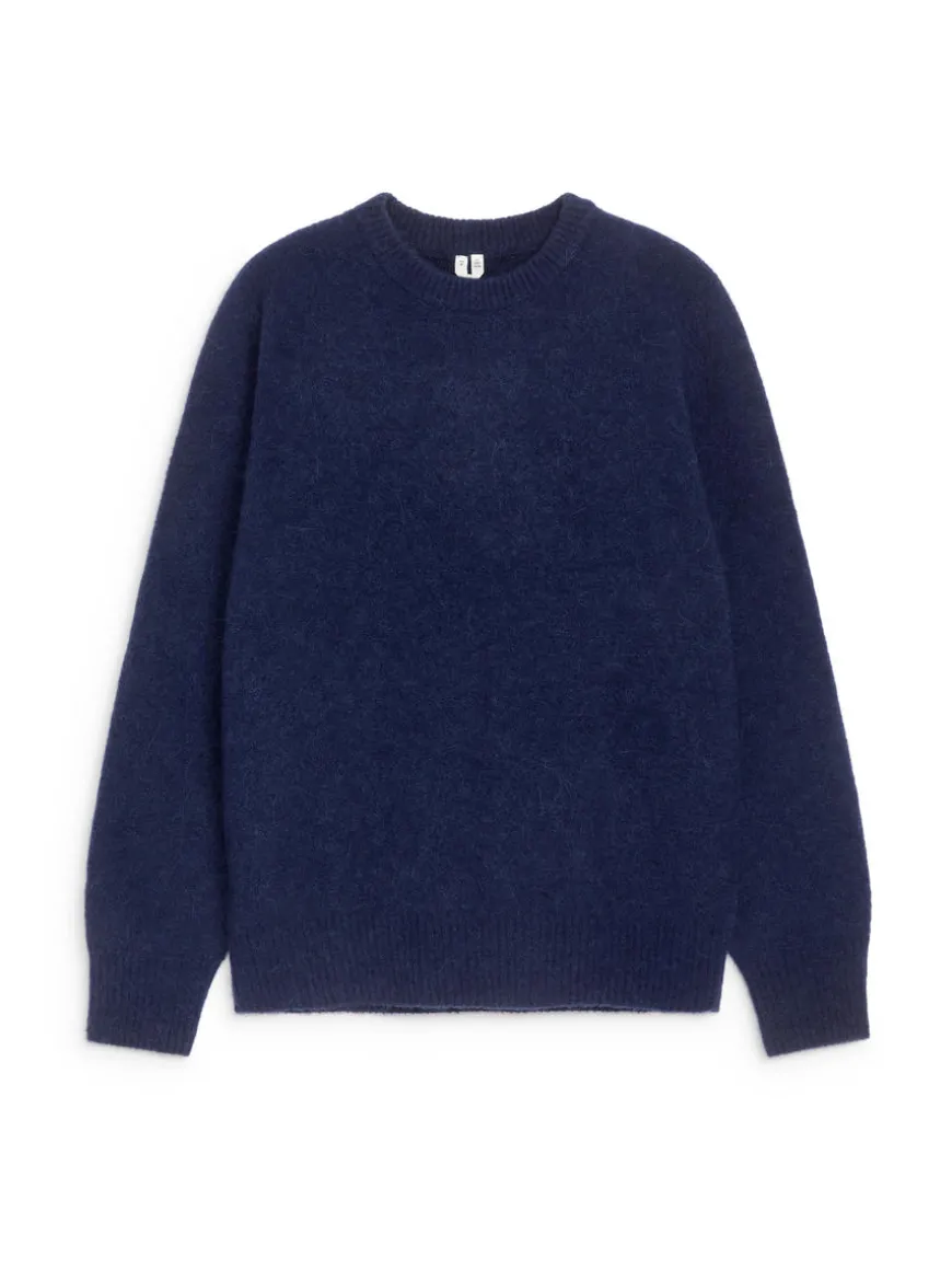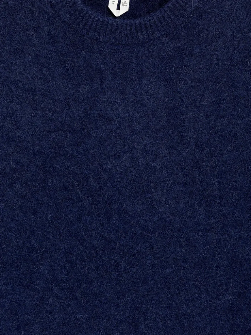 Chunky crew-neck jumper with a cosy, hairy surface. Polyester and elastane have been added to the yarn for lightweight and durability properties.