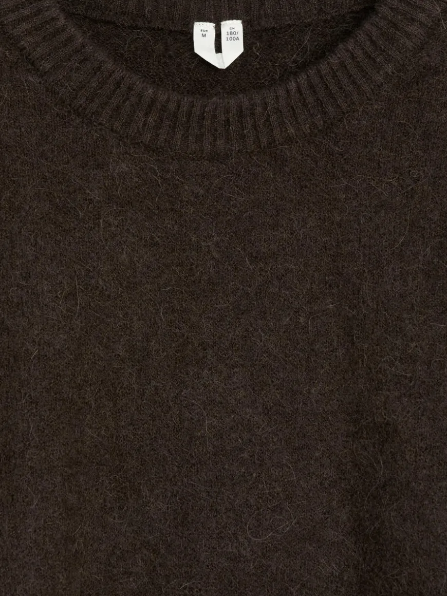 Chunky crew-neck jumper with a cosy, hairy surface. Polyester and elastane have been added to the yarn for lightweight and durability properties.