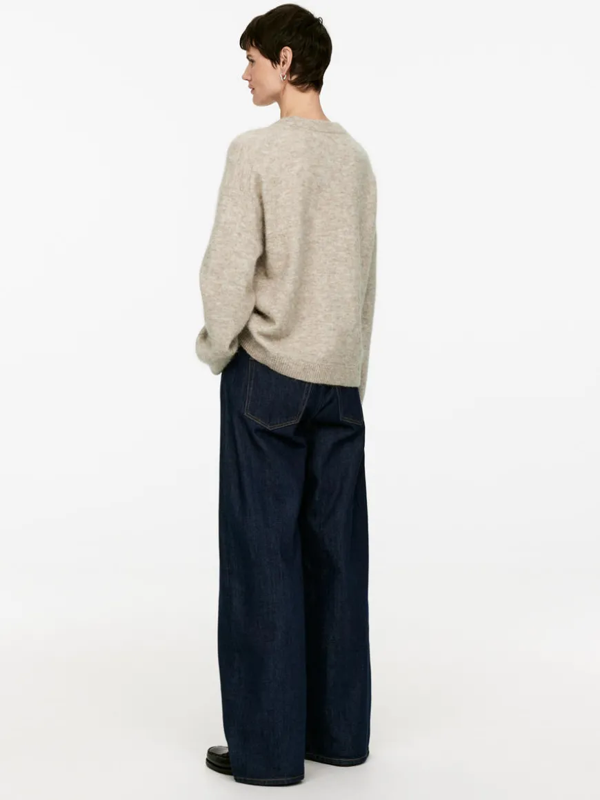 Fuzzy jumper with an oversized fit made with comfort-inducing alpaca and wool. Ribbed trims detail the look. The jumper contains 31% RWS wool, certified by control union 810300. Products certified to the Responsible Wool Standard (RWS) contain wool fiber from farms independently certified to animal welfare and land management requirements.