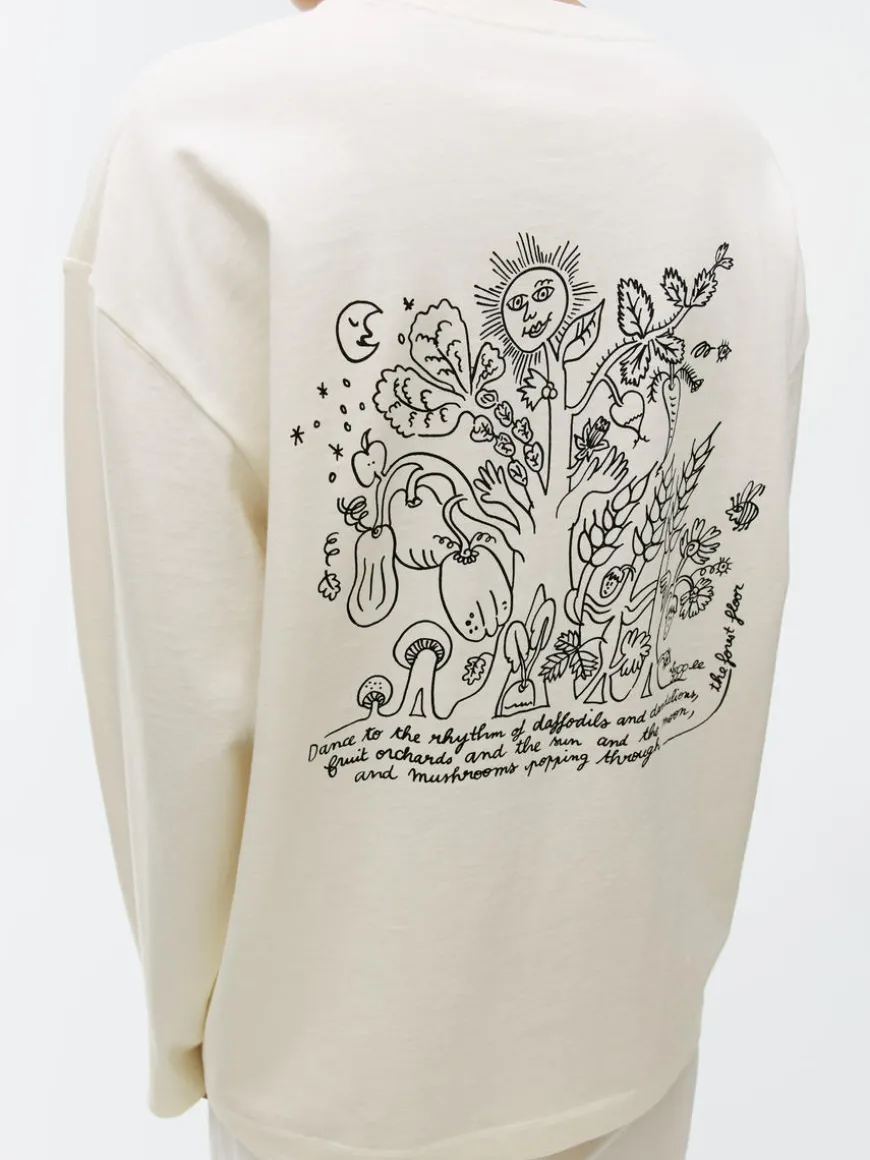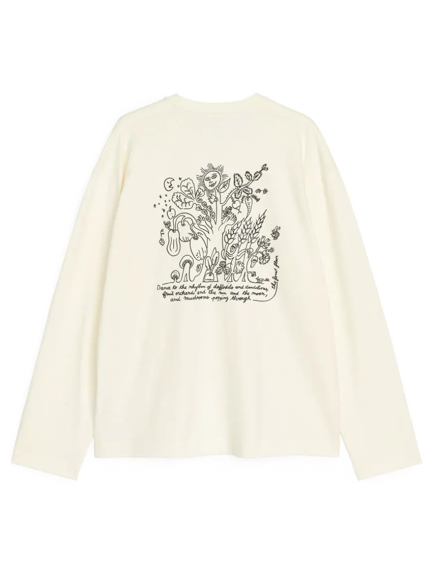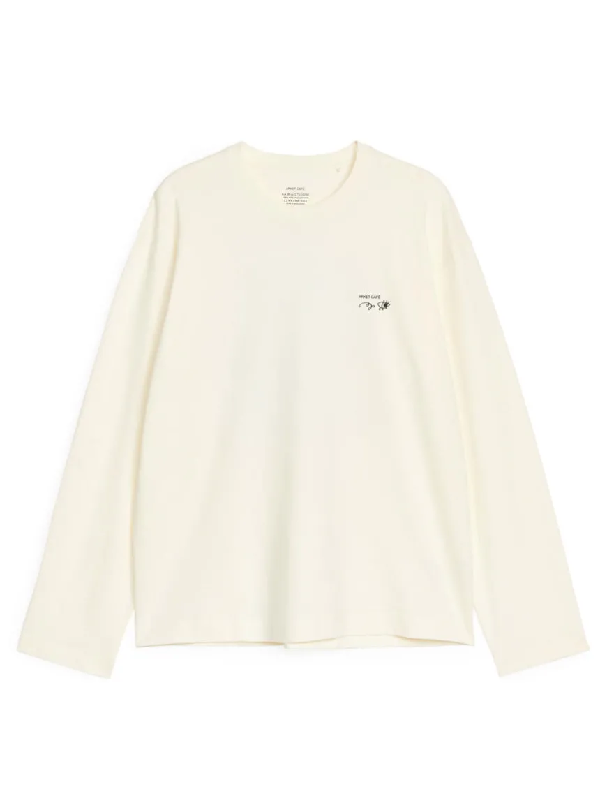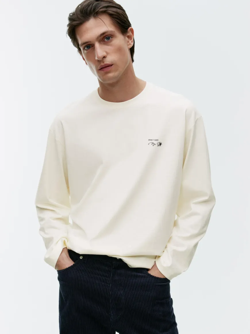 Unisex T-shirt with printed motif at both front and back. A long-sleeve style crafted from a mid-weight 220 GSM cotton single jersey. Cut for a generous fit. This product is part of the ARKET CAFÉ collection featuring illustrations by Olga Prader.