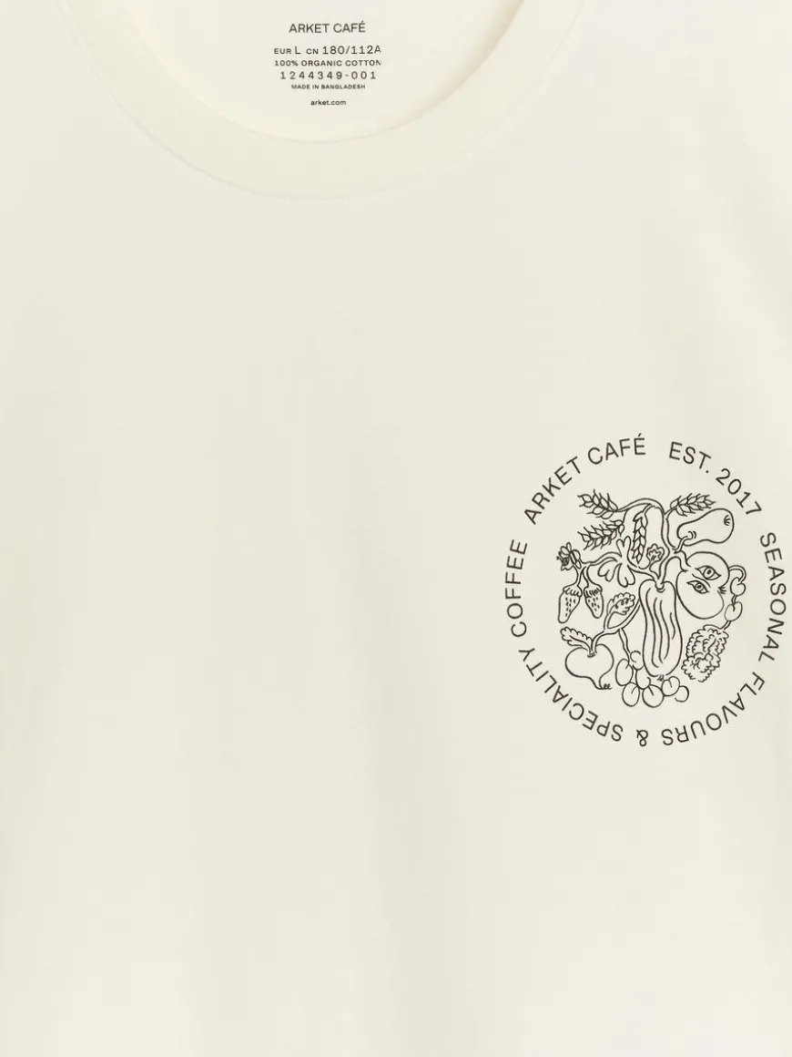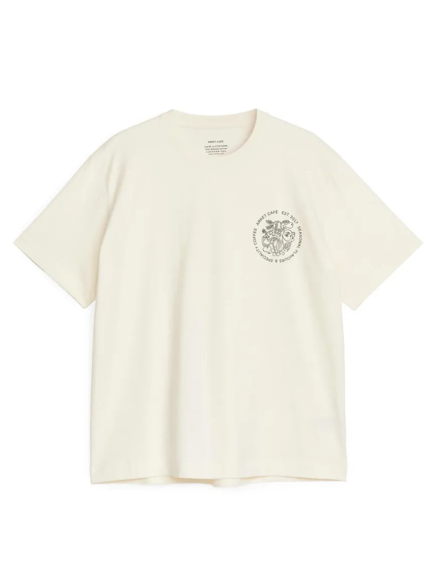 Unisex T-shirt with a printed motif at the front. A short-sleeve style crafted from a mid-weight 220 GSM cotton single jersey. Cut for a generous fit. This product is part of the ARKET CAFÉ collection featuring illustrations by Olga Prader.