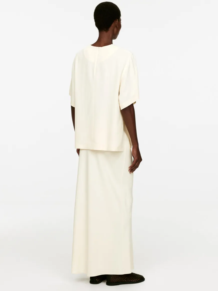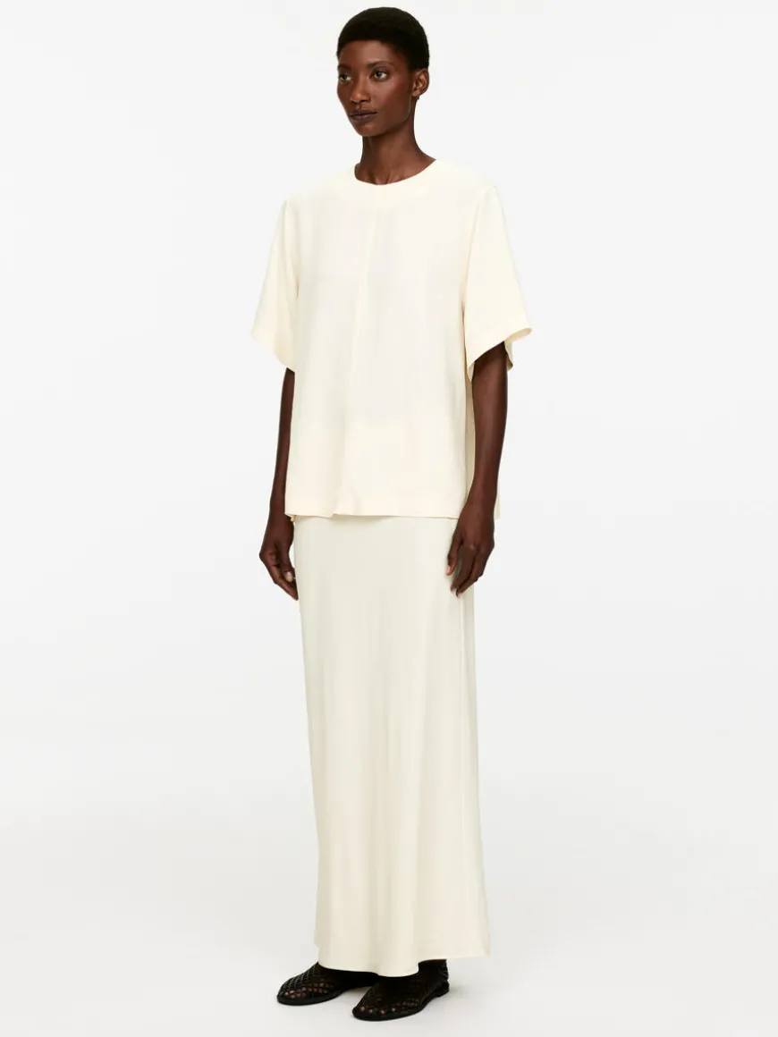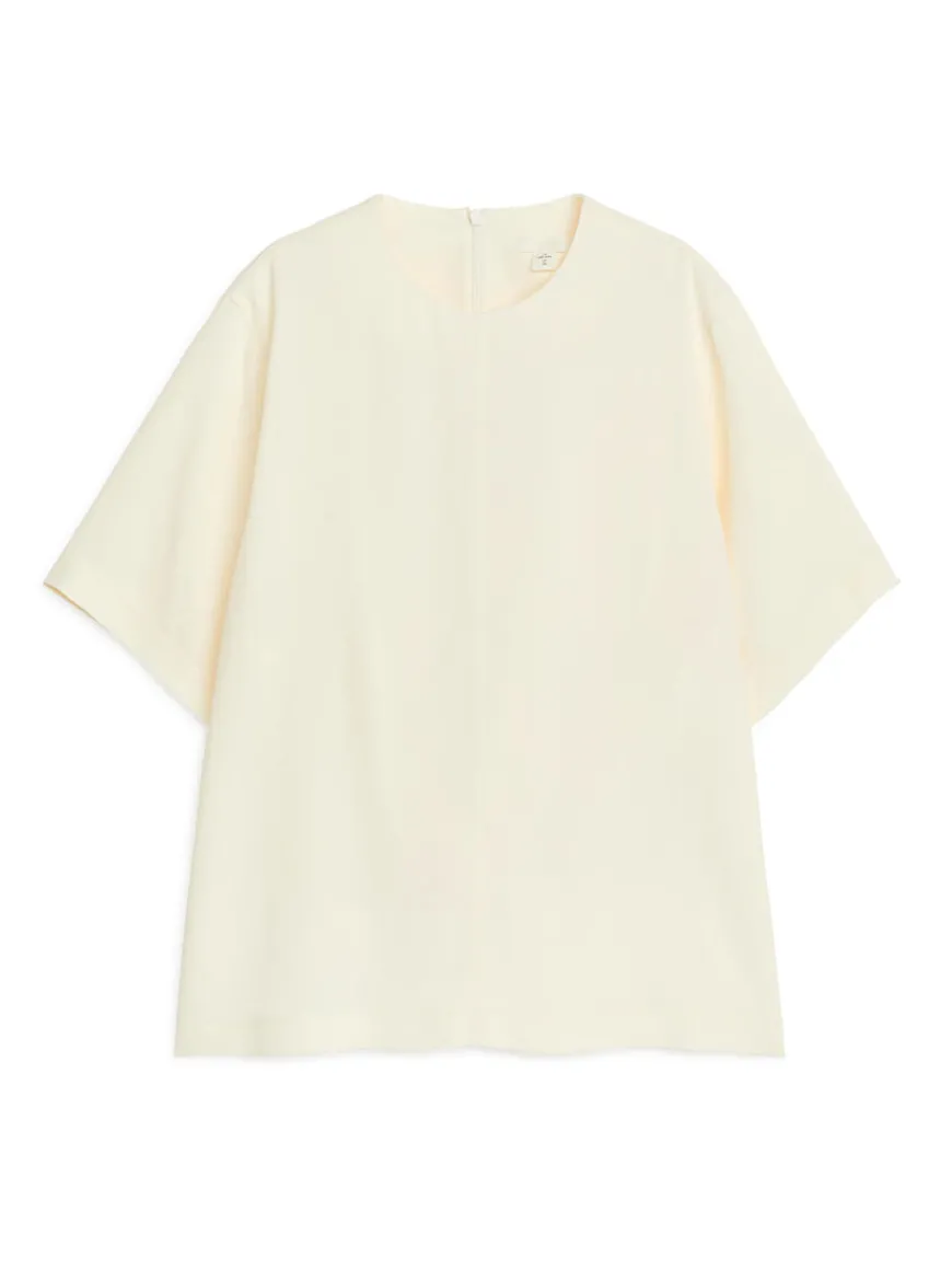T-shirt crafted from a viscose blend. Styled with vertical cut-and-sewn detail at centre front and zip at centre back. Regular fit.