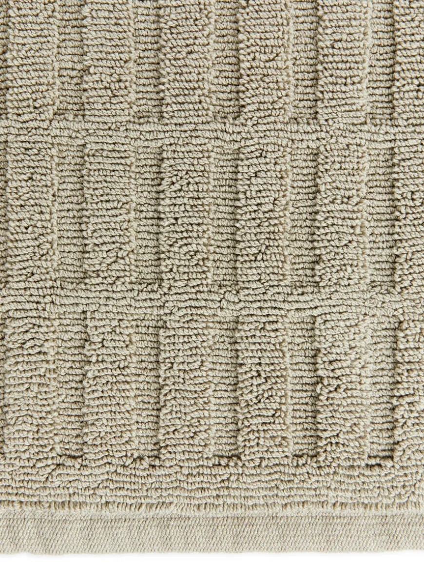 Bath mat with grid texture made from cotton. Size 50 x 70 cm.