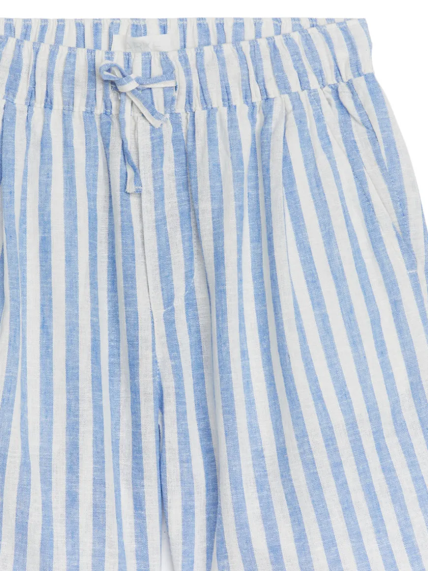Shorts in a tactile cotton linen blended weave. An elasticated drawstring waist allows for a comfortable, adjustable fit. Pockets at side seams.