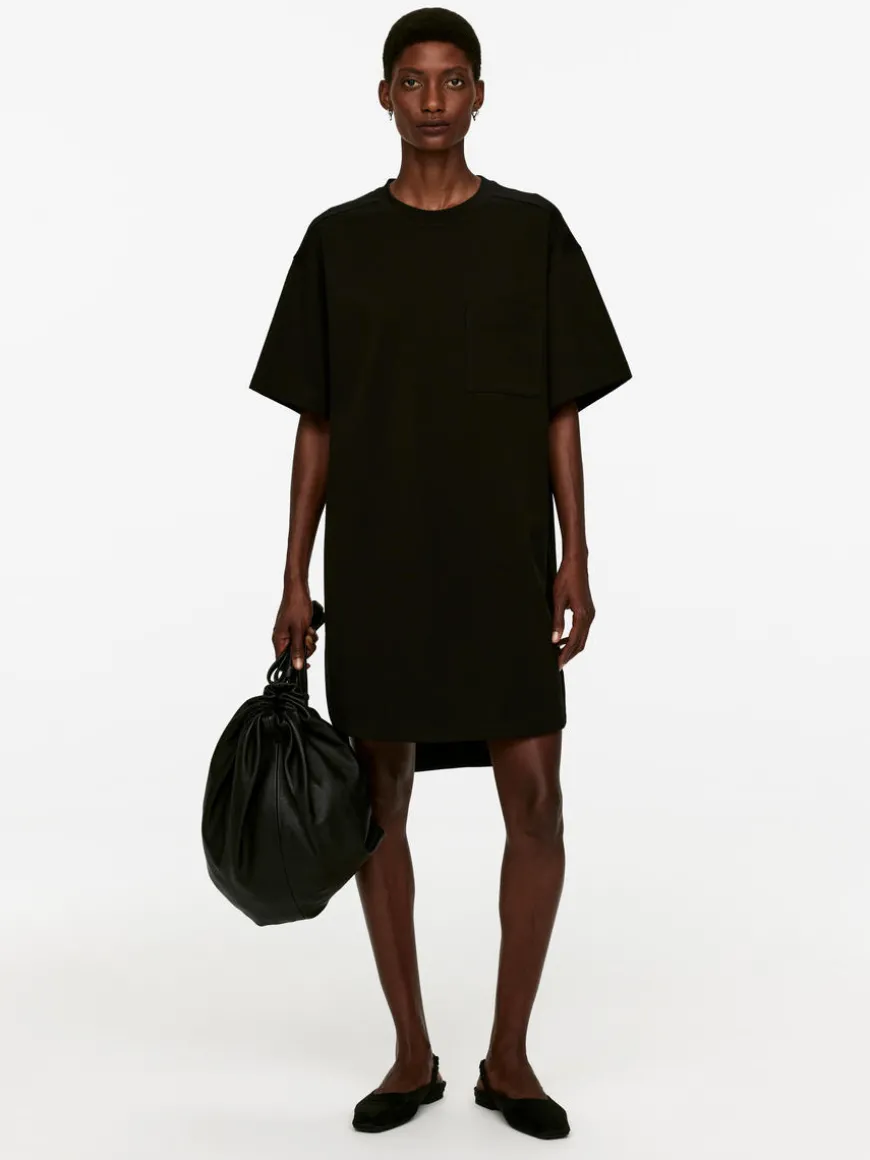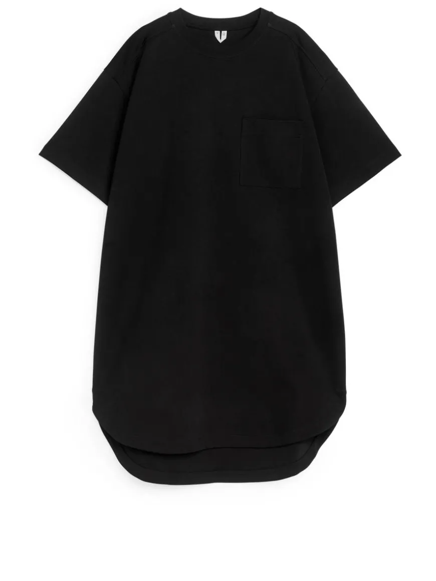 T-shirt dress made of cotton with a hint of elastane for stretch. Detailed with a patch pocket. Slightly longer in the back.
