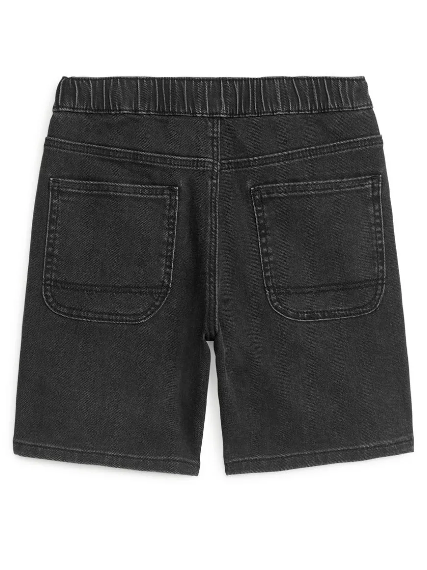 Denim shorts crafted from a soft cotton blend. An everyday style detailed with patch pockets in the back and an elasticated waistband. Press button closure and zip fly.