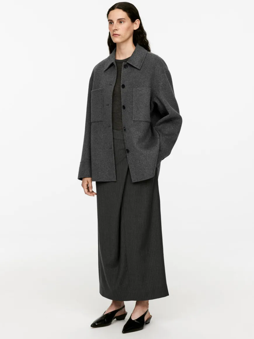 Shirt made from double cloth fabric made of wool and lyocell. Patch pockets at chest and slit at sides. Regular fit. The shell fabric contains 65% RWS wool (TE-00047206). Products certified to the Responsible Wool Standard (RWS) contain wool fiber from farms independently certified to animal welfare and land management requirements.