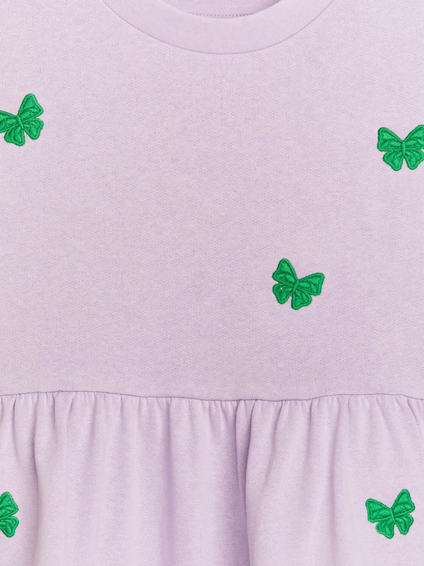 Oversized sweatshirt dress in cotton terry with embroidered cats. Styled with dropped shoulders and gatherings at waist. Ribbed trims create definition at the cuffs and hem.