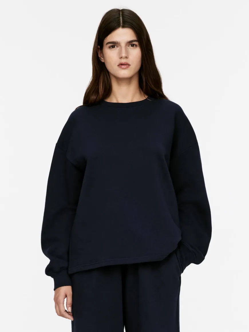 Sweatshirt crafted from cotton with a French terry underside for moisture-wicking properties. Rib at neck and cuffs. Loose fit.