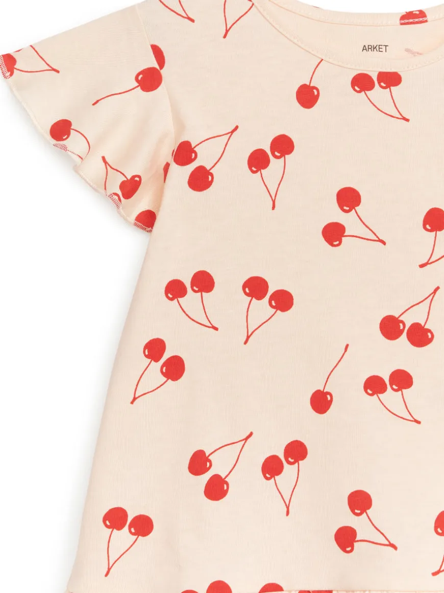 Soft cotton jersey dressĀ a frilled hem and flouncy sleeves. This pull-on style is cut for a regular fit that grants freedom of movement.