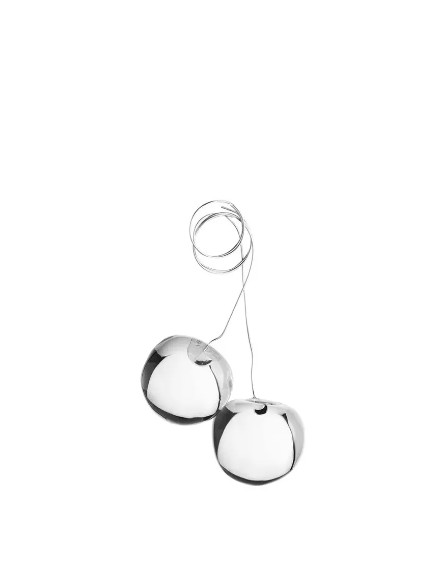 Delicate berry-shaped ornaments made of glass. Flexible metal wire for versatile hanging. Sold in set of two pieces. Diameter approximately 3 cm.
