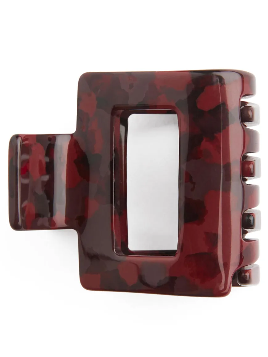 Square-shaped hair claw made of recycled acetate. Measurements 4.5 cm x 4.6 cm.