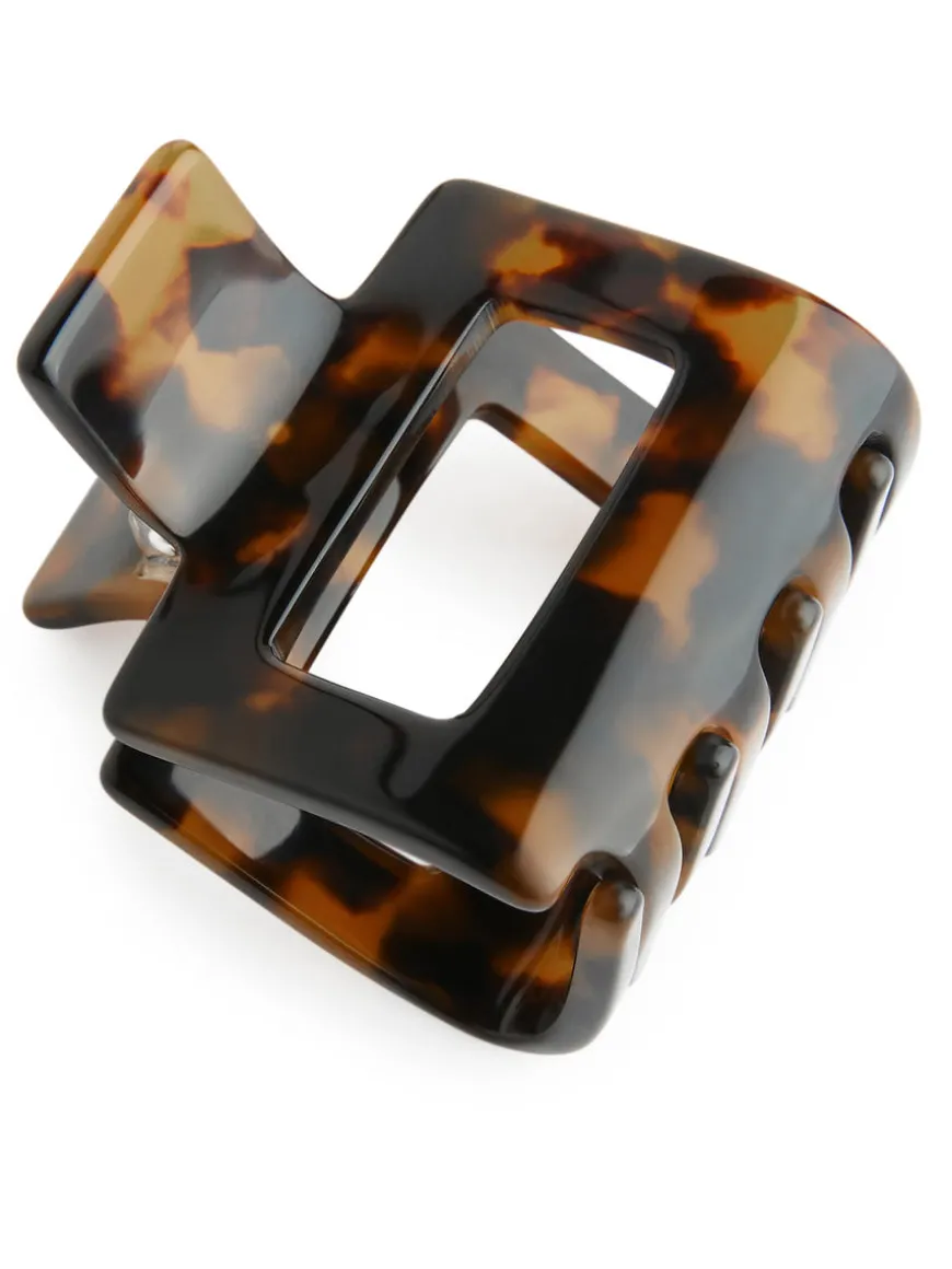 Square-shaped hair claw made of recycled acetate. Measurements 4.5 cm x 4.6 cm.