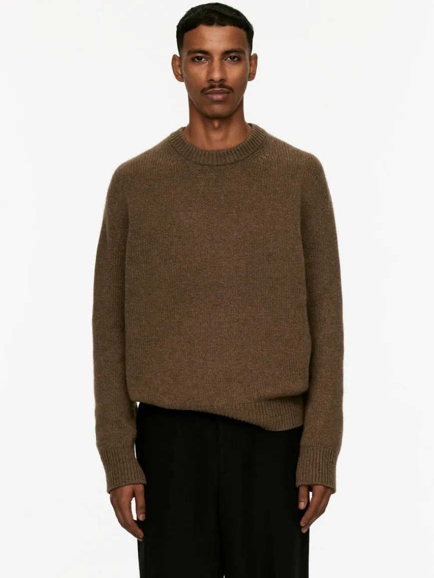 Chunky jumper knitted in a plain stitch and designed with an oversized fit and a boxy silhouette. Made from soft wool with nylon added for a lightweight feel. A crew-neck style with rib-knitted trimmings.