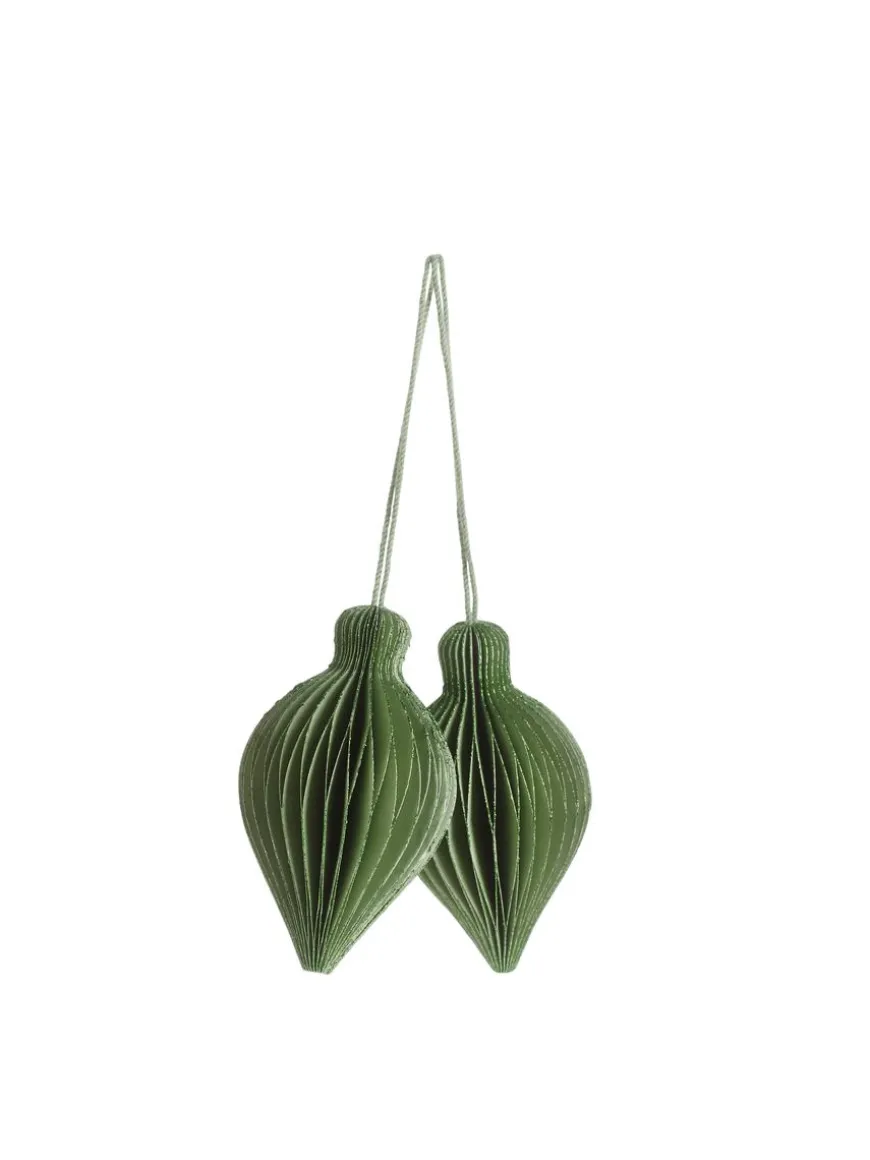 Honeycomb ornaments handmade from sturdy paper with ribbon for easy hanging. Sold in set of two. Height 80 mm, string excluded.
