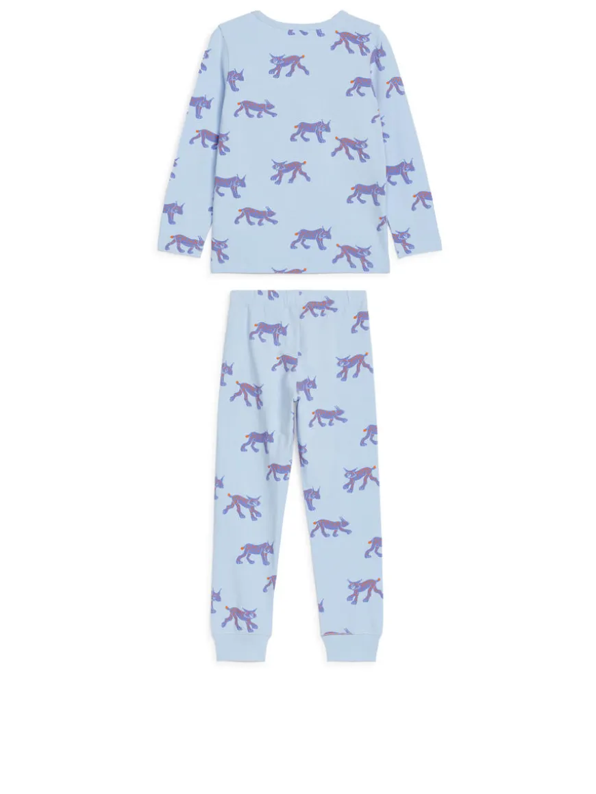 Sewn from a soft single jersey fabric, this two-piece pyjama is made of cotton. A crew-neck pyjama top with long sleeves, and trousers with elasticated waist. Ribbed cuffs at both sleeves and legs.