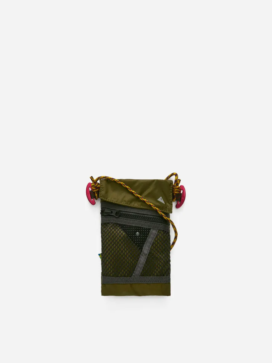 The Algir Lanyard Pocket from Swedish mountaineering brand Klättermusen is made from 100% recycled polyamide with Econyl® yarn. Detailed with an adjustable cord to hang over shoulder or around neck and two toggles to attach to backpack. Velcro lid opening, small pocket on the inside and mesh pocket on the outside.