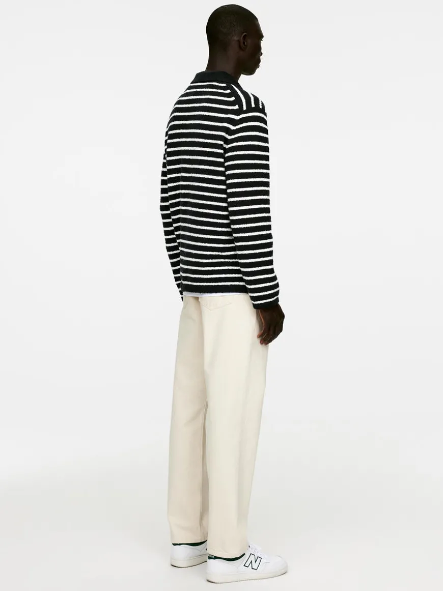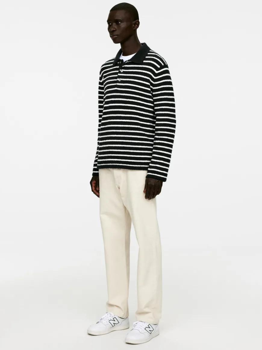 Long-sleeved polo shirt flat knitted in a soft cotton blend, giving a soft and cosy feel to the touch. Regular fit. Mother of pearl buttons.