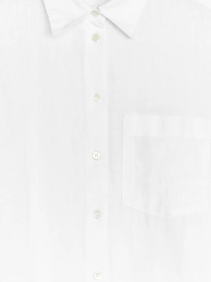 Shirt crafted from linen. A regular-fit style with button closure and pockets at chest.