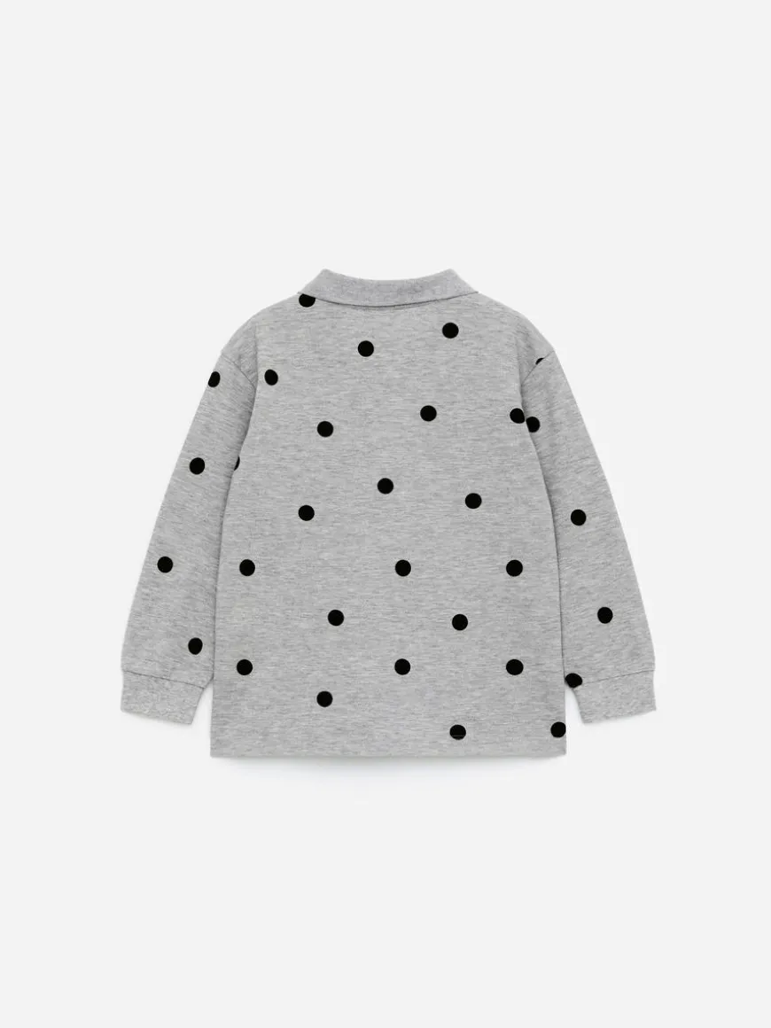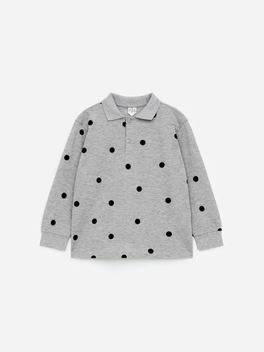 Long-sleeved polo shirt with ribbed cuffs and side slits. Relaxed fit.