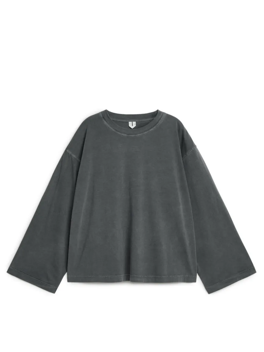 Long-sleeve T-shirt in cotton jersey. This style has a relaxed fit with dropped shoulders and slightly wider sleeves. Washed to give a soft, aged look.
