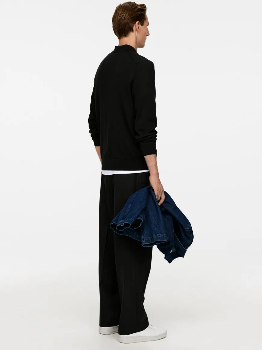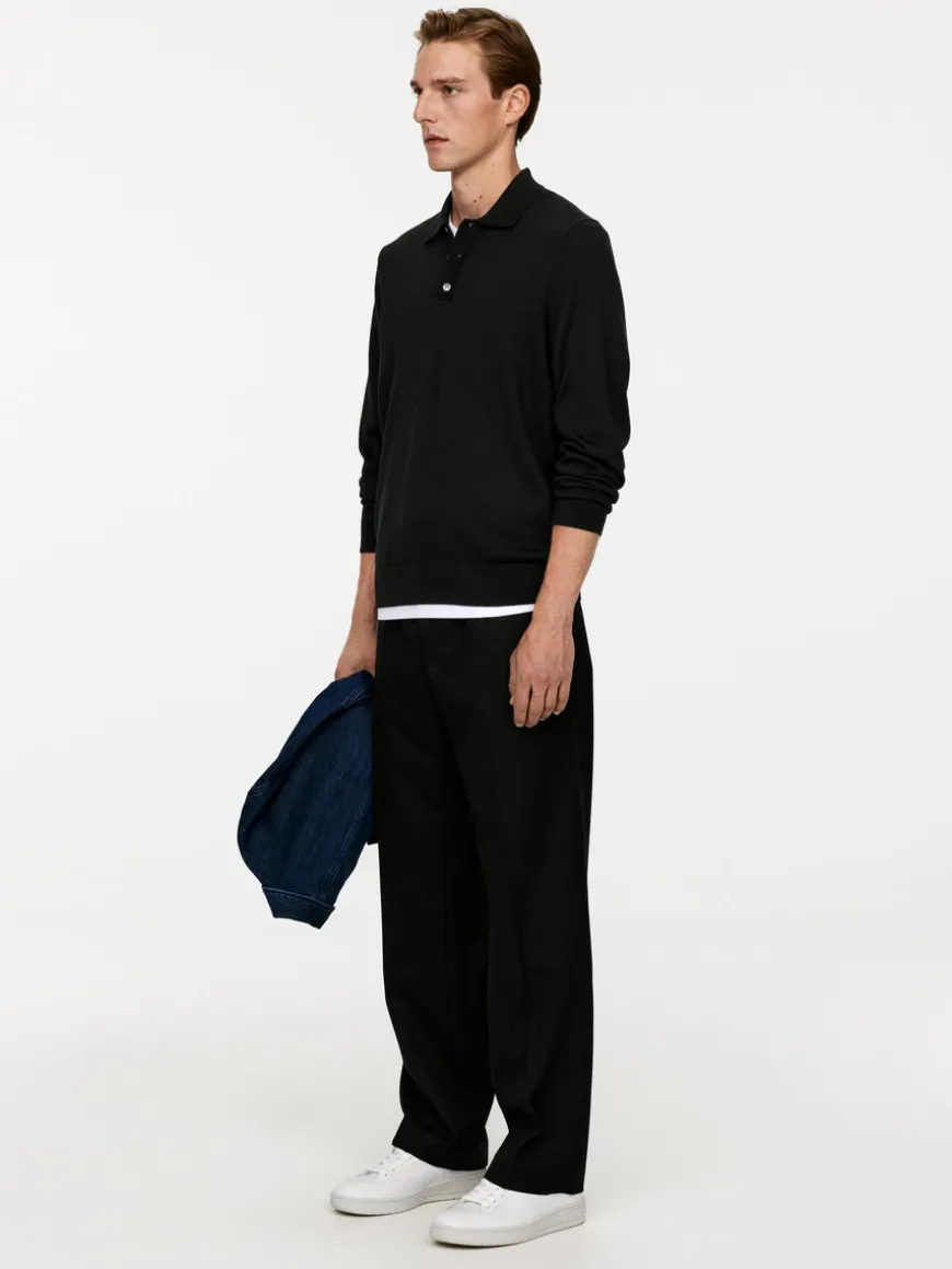 Fine-knit polo jumper crafted from merino wool. This style has a soft feel to the touch and a slightly lustrous surface. The jumper is detailed with collar and a buttoned half placket. The hemline and cuffs are rib-knitted. This jumper contains 100% RWS wool, certified by control union 1244999. Products certified to the Responsible Wool Standard (RWS) contain wool fiber from farms independently certified to animal welfare and land management requirements.