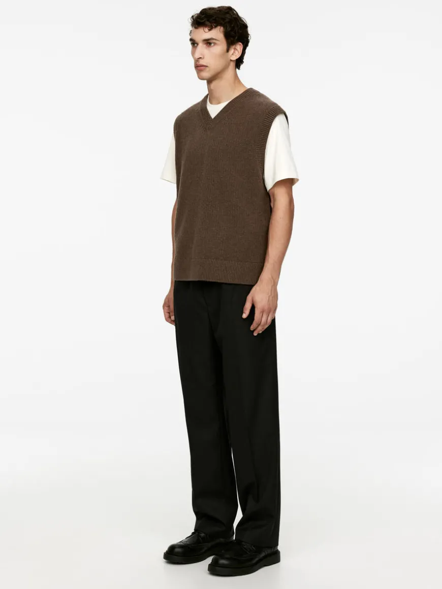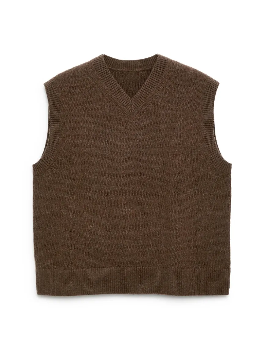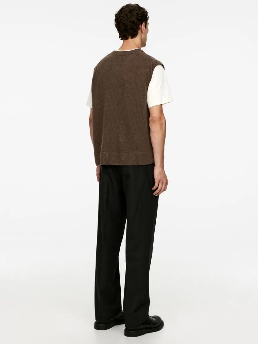 Knitted wool west with ribbed trims. Regular fit. The vest is made from 100% NATIVARegen™ wool certified by the NATIVA™ Protocol. The certification includes animal welfare, land and environment management and corporate social responsibility.
