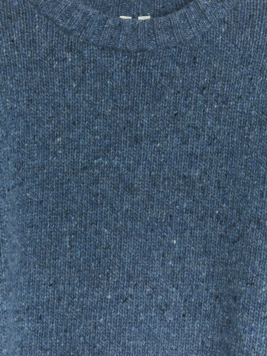 A soft neps yarn made from a blend of wool and alpaca, gives a melange effect to this knitted jumper. A classic crew-neck style with rib-knitted trimmings.