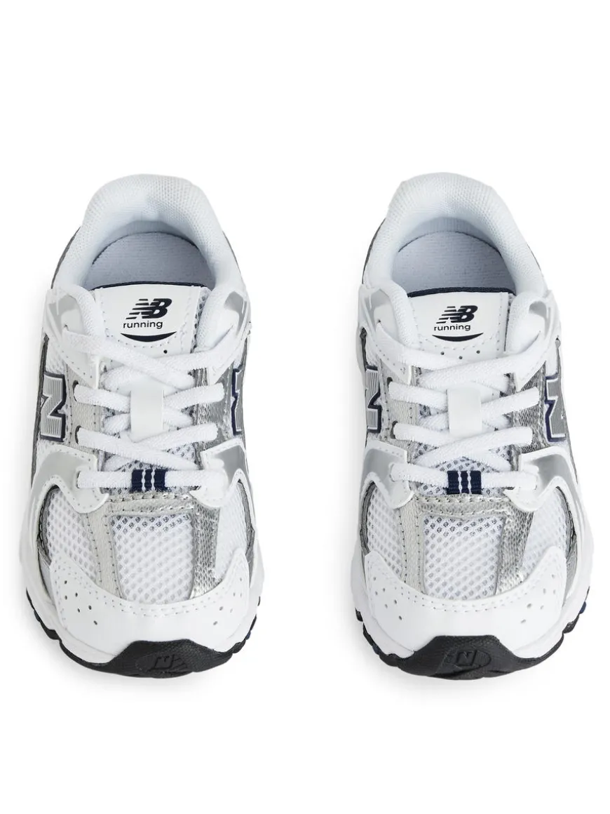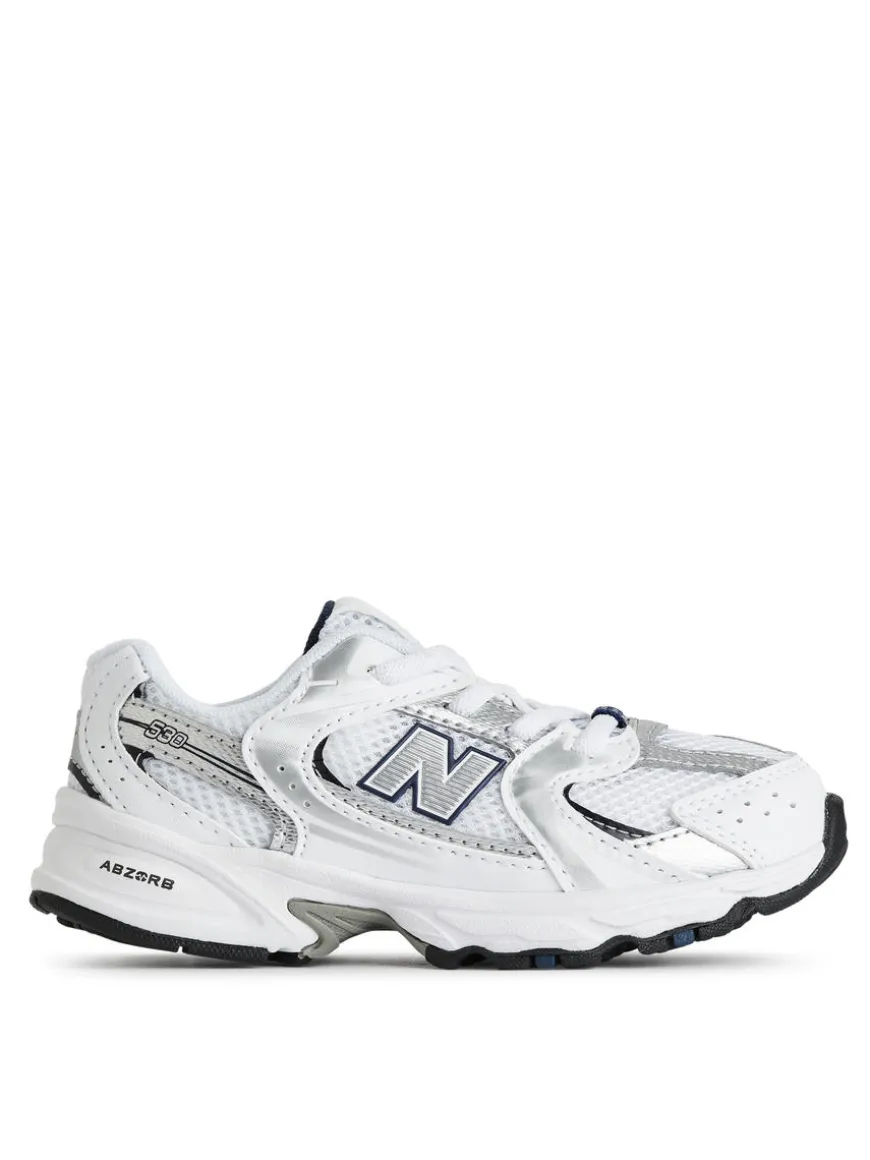 The New Balance 530 Bungee kids’ sneaker is a throwback to one of the brand’s classic running shoes. It features an ABZORB midsole for cushioning and compression resistance, a synthetic/mesh upper and adjustable bungee lace closure.