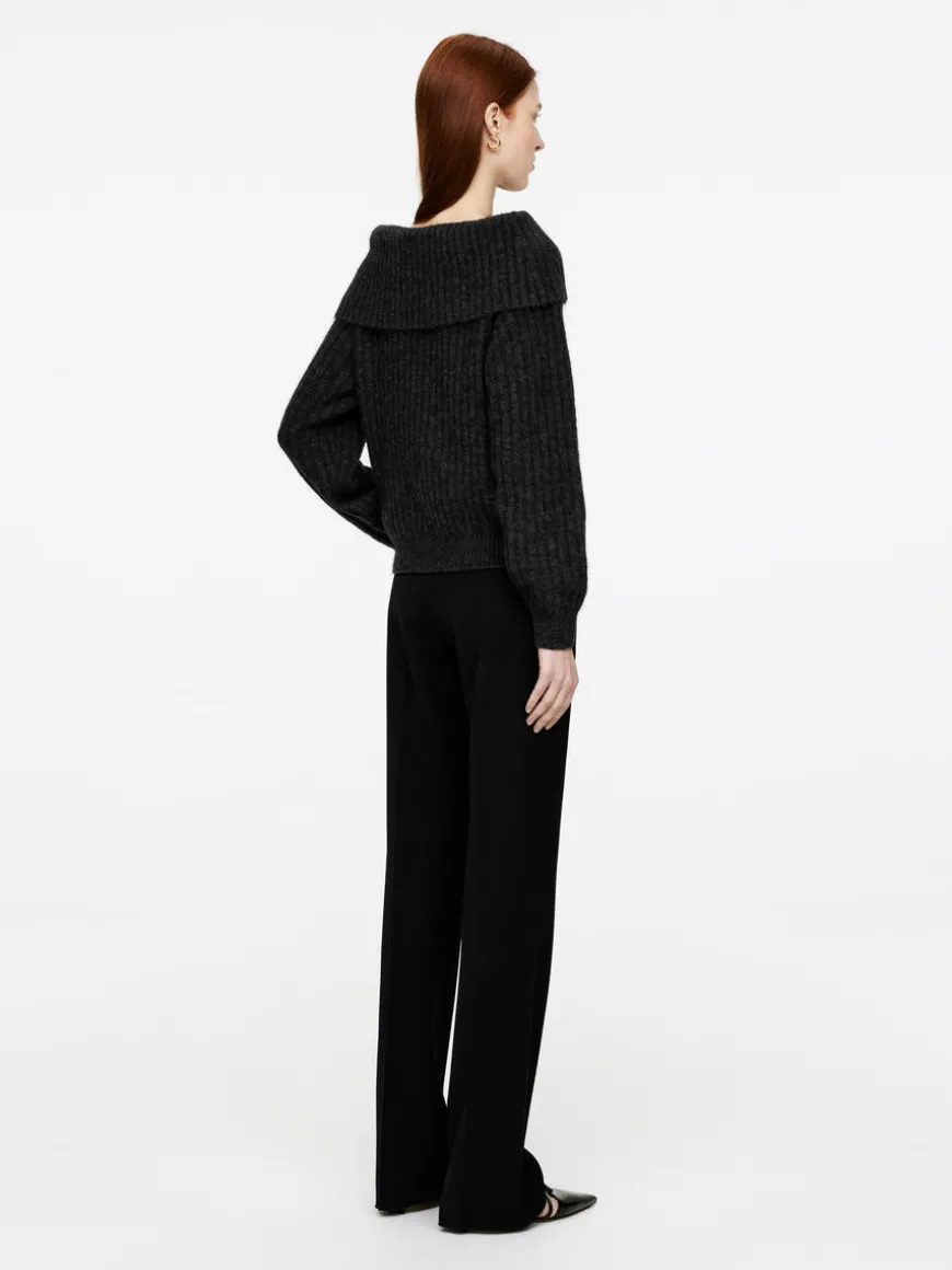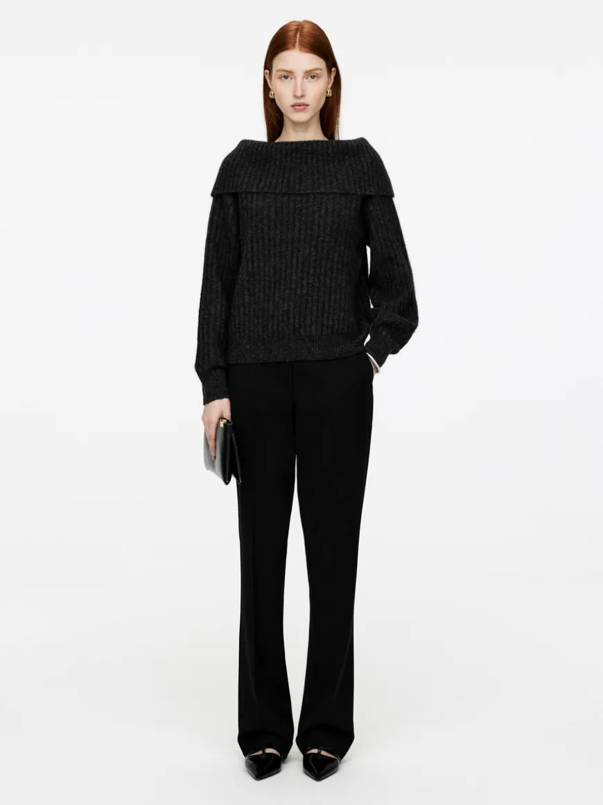 Off-shoulder jumper with a folded neck. This style is rib-knitted from an alpaca-wool blend. Slightly oversized fit. The jumper contains 31% RWS wool (TE-00047206). Products certified to the Responsible Wool Standard (RWS) contain wool fiber from farms independently certified to animal welfare and land management requirements.