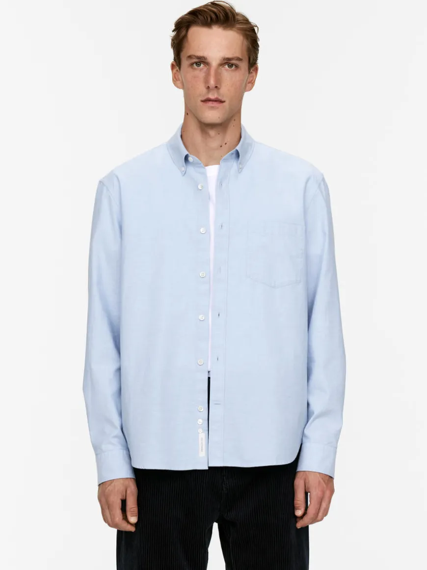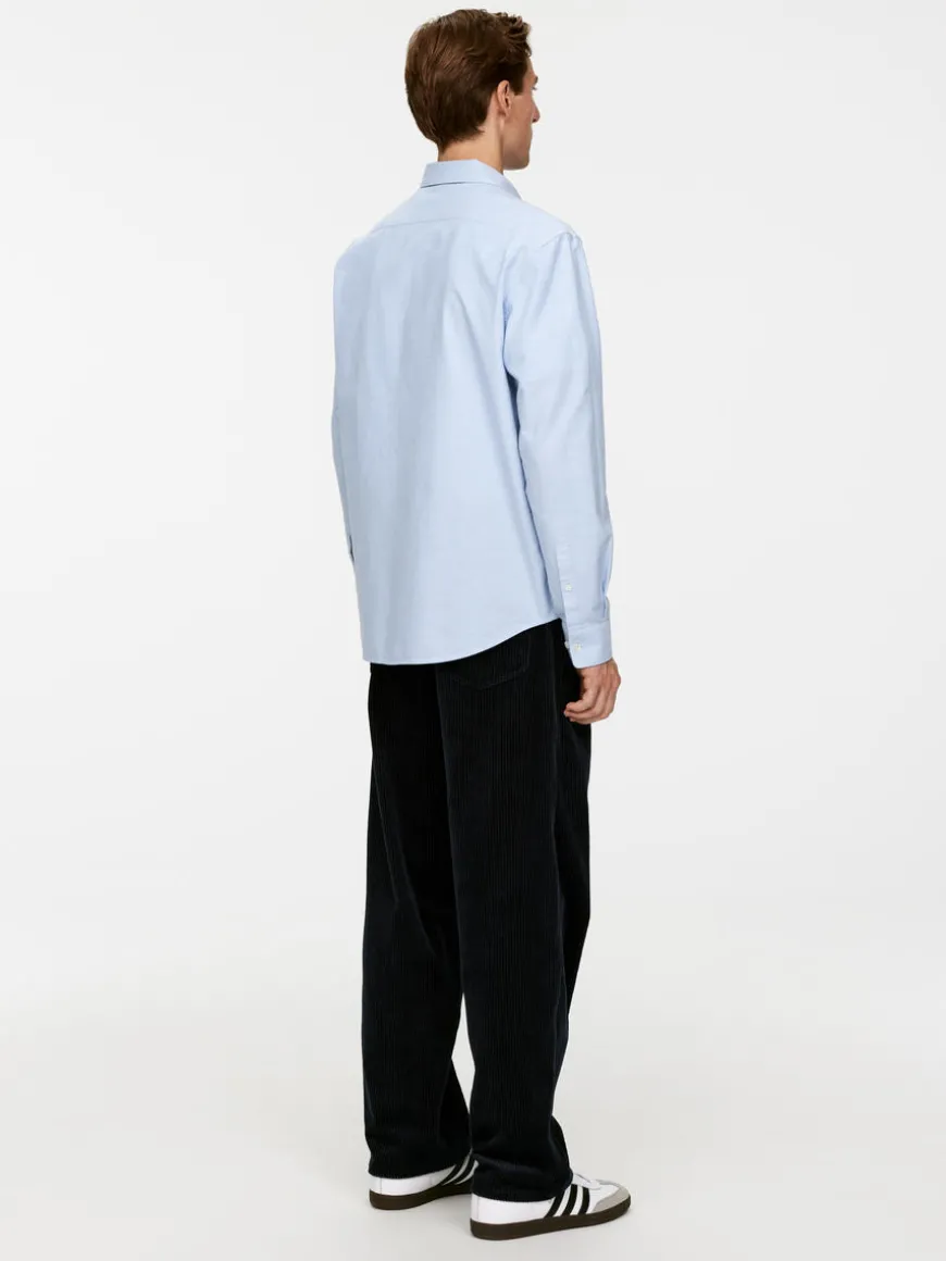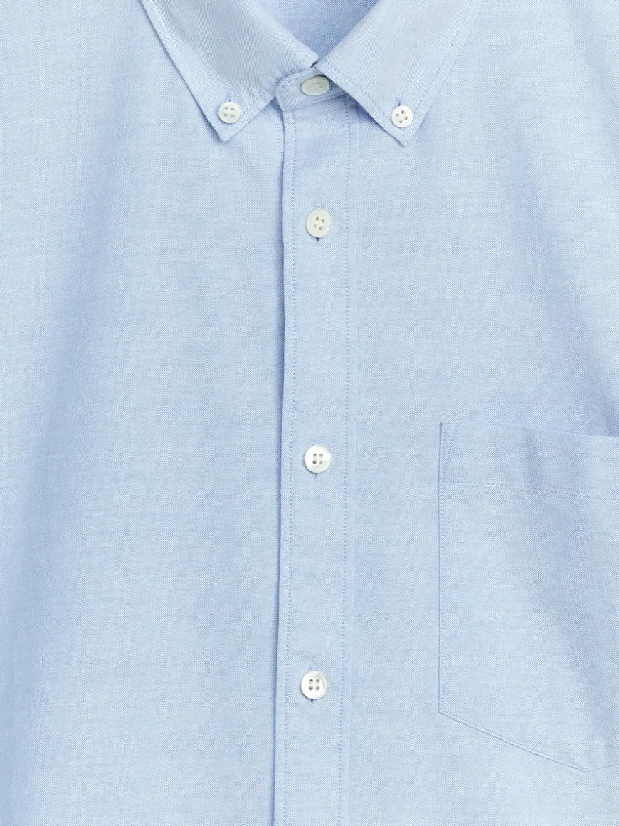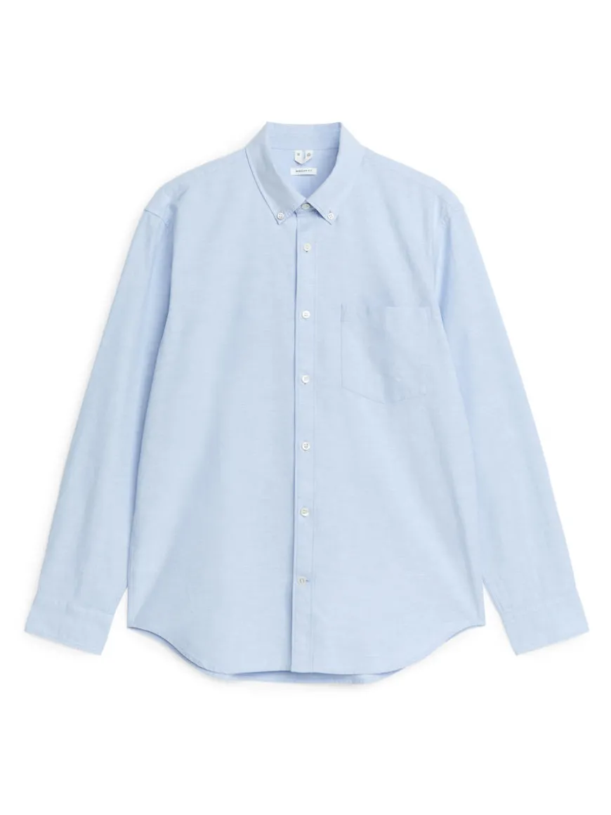 This shirt is one of ARKET’s archetypical designs, a regular-fit shirt with a button-down collar. This iteration is sewn from an Oxford weave. A casual style with a regular front placket and a chest pocket. Rounded hemline.