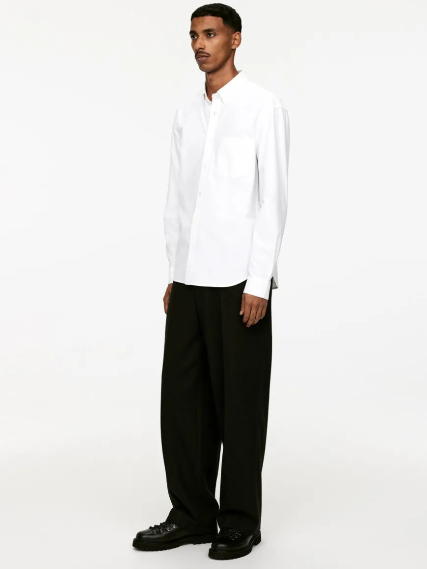 This shirt is one of ARKET’s archetypical designs, a regular-fit shirt with a button-down collar. This iteration is sewn from an Oxford weave. A casual style with a regular front placket and a chest pocket. Rounded hemline.