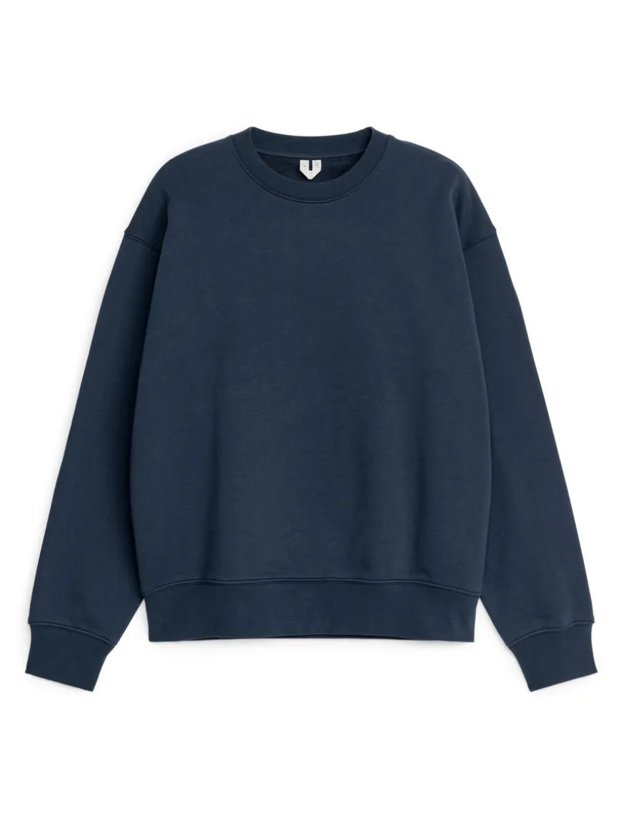 Sweatshirt sewn from a French terry fabric made of cotton. A relaxed-fitted style with slightly dropped shoulders. Ribbed trimmings.