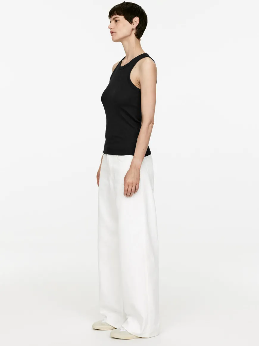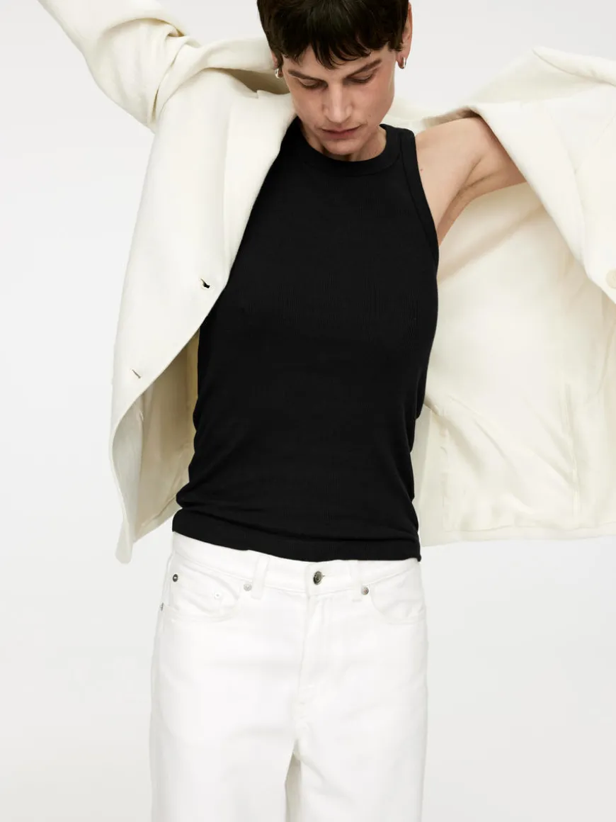 Slim-fit tank top cut from a soft ribbed jersey fabric made from cotton with a hint of elastane. Designed with a flattering racer-shaped neckline and back.