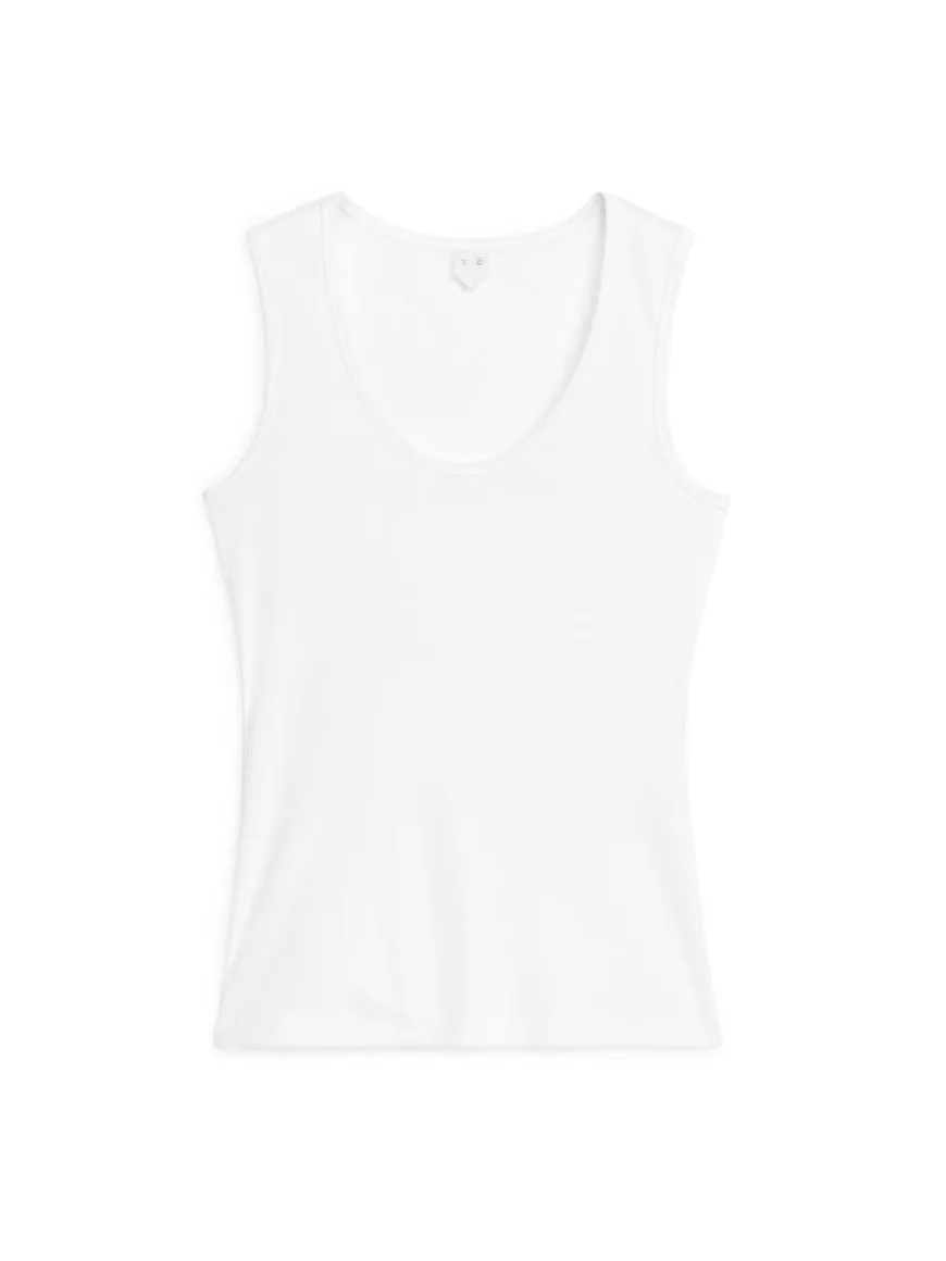 Tank top cut from a ribbed cotton jersey. A slim-fit style featuring a scooped neck.