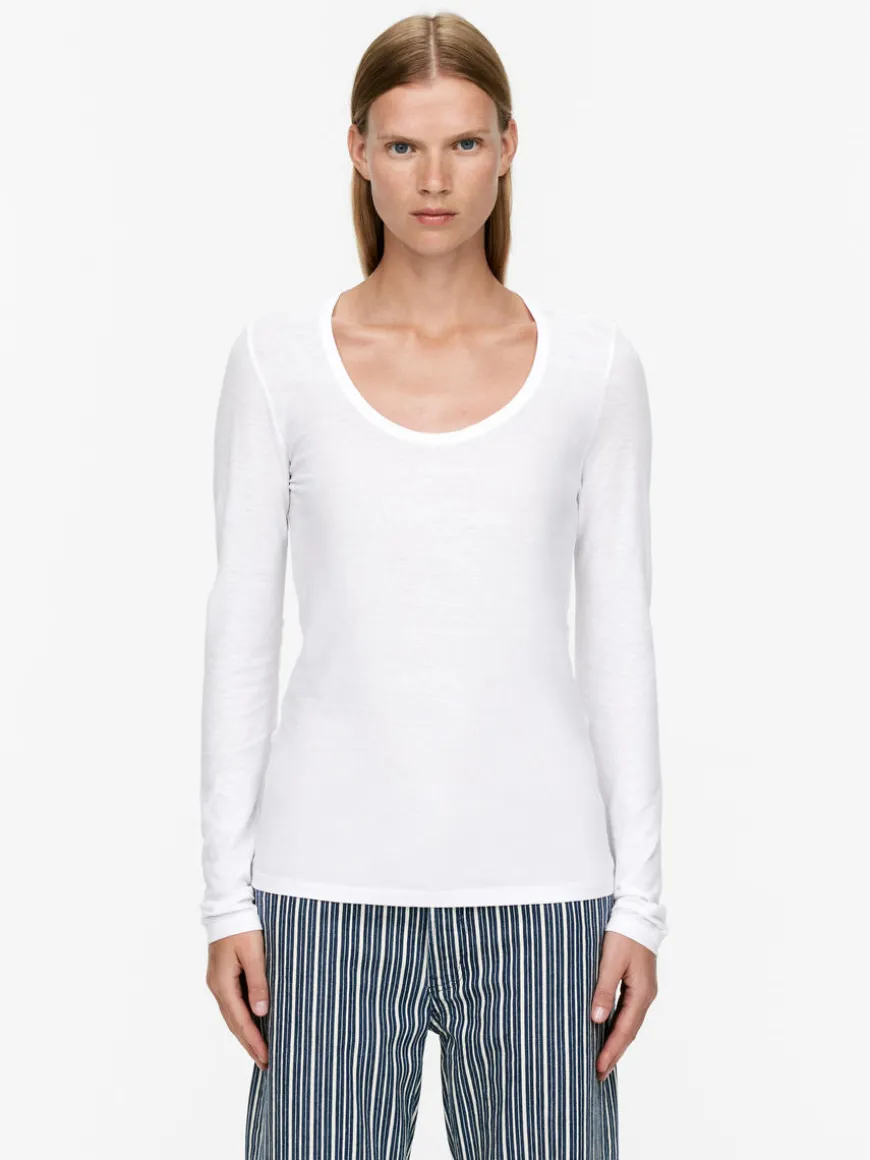 Long-sleeved jersey top crafted from cotton. Styled with a scooped neckline and a slim fit.