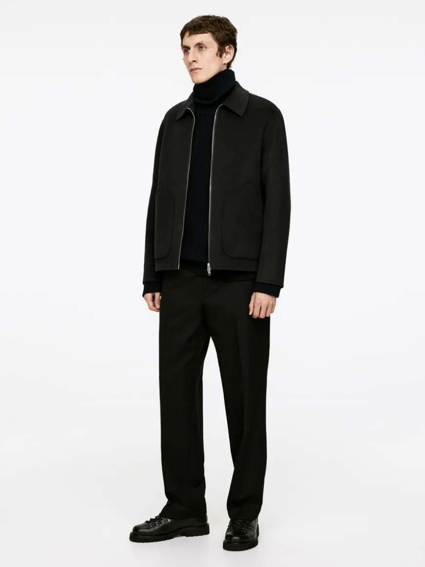 This jacket is made from a premium doublé wool fabric. Cut for a short, straight fit and detailed with two front pockets and a two-way zip. This style contains 80% RWS wool, certified by control union 815571. Products certified the the Responsible Wool Standard (RWS) contain wool fiber from farms independently certified to animal welfare and land management requirements.