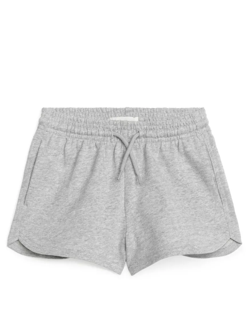 In pure organic cotton, these terry shorts are slightly rounded on the sides for added freedom of movement. They feature an elasticated drawstring waist and side-seam pockets.