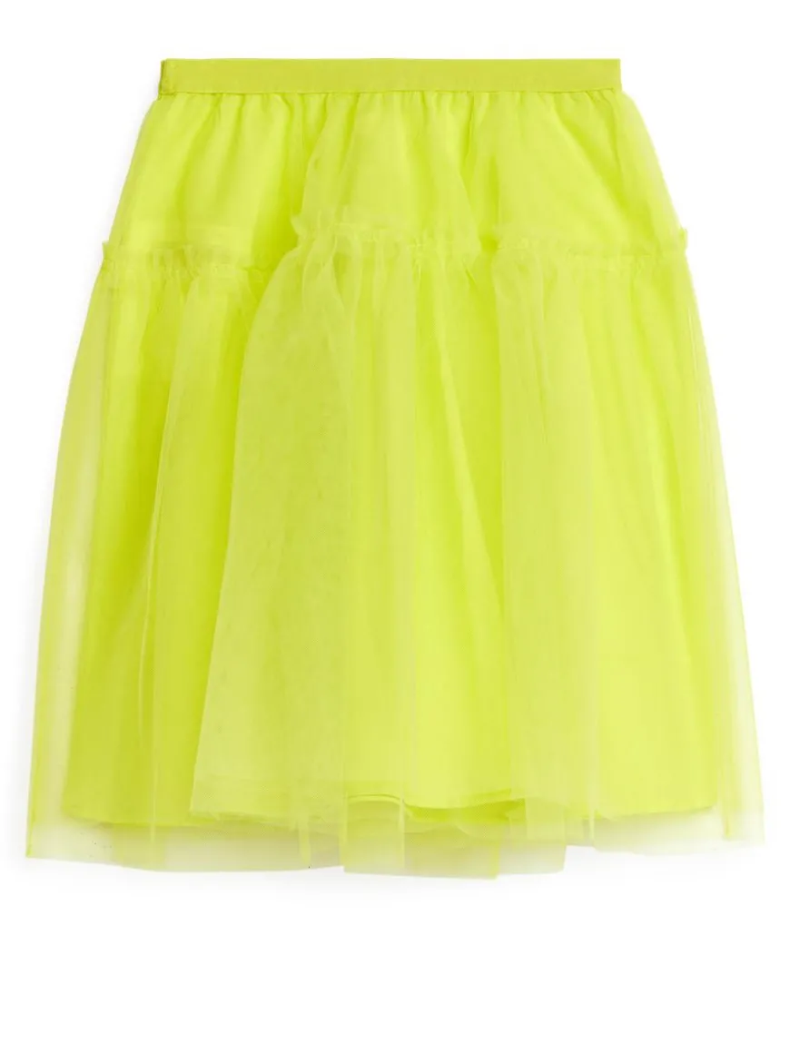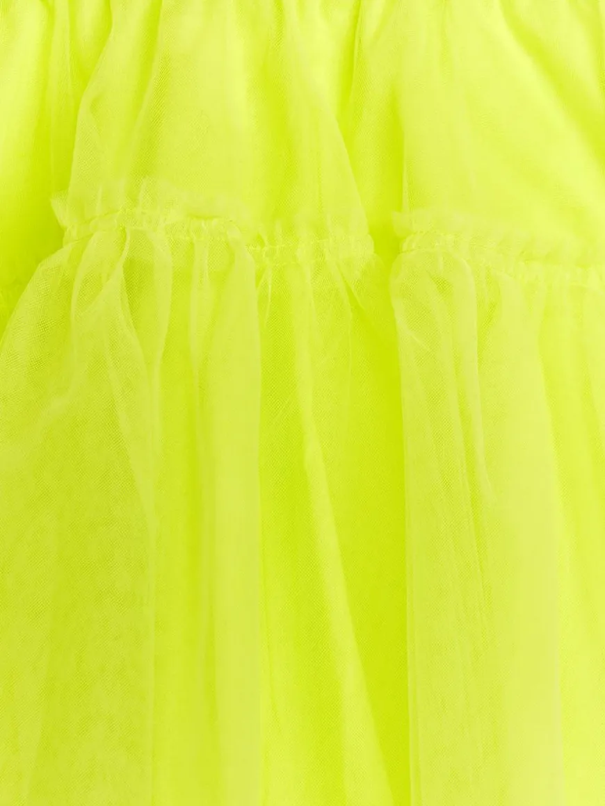 Tulle skirt finished with an elasticated waistband and a frill detail. Made from double layers of tulle and cut for an A-line silhouette. Cotton lining.