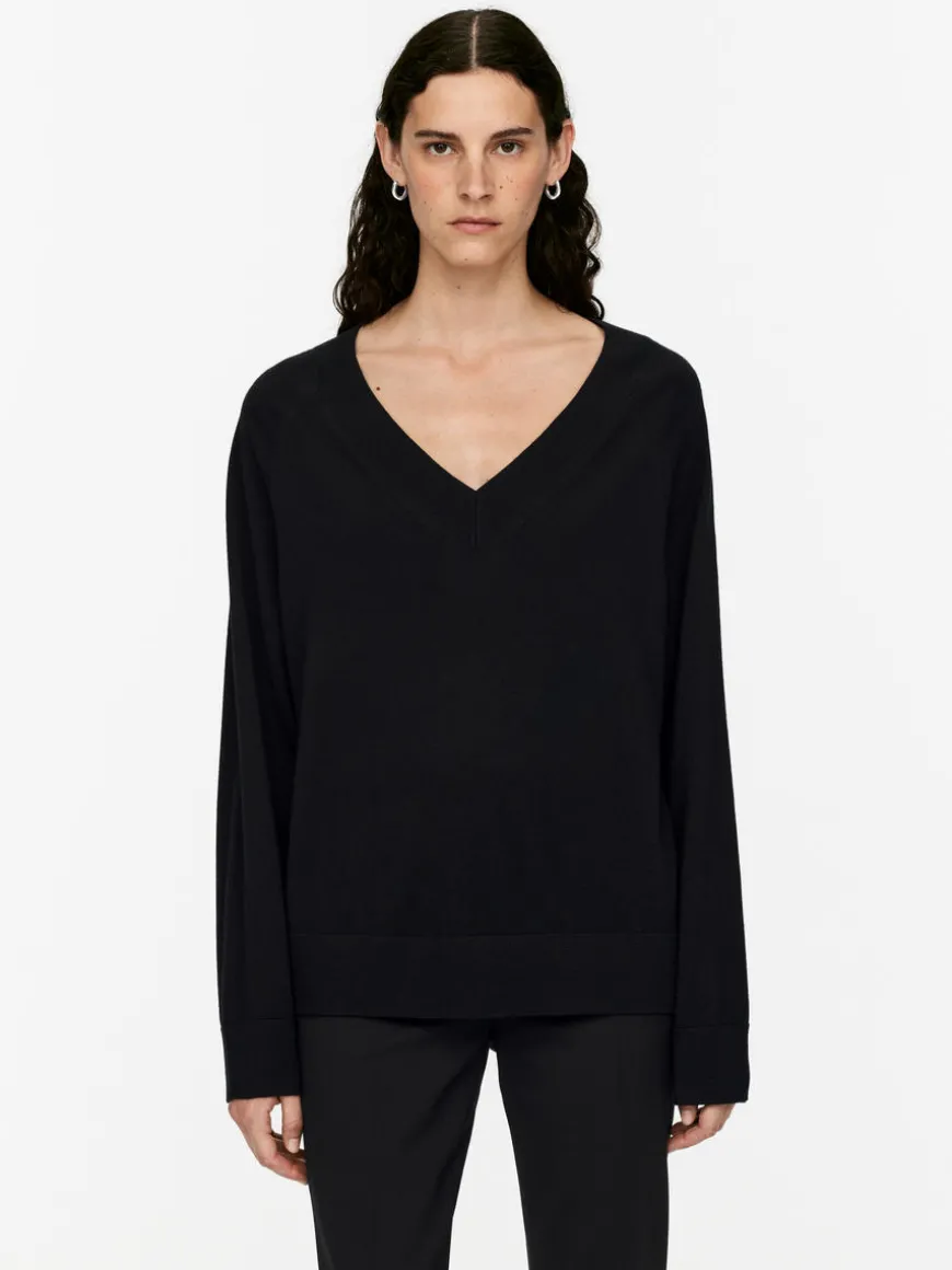 Long-sleeved jumper crafted from merino wool. A V-neck style with ribbed trims. The jumper contains 100% RWS wool (TE-00047206). Products certified to the Responsible Wool Standard (RWS) contain wool fiber from farms independently certified to animal welfare and land management requirements.