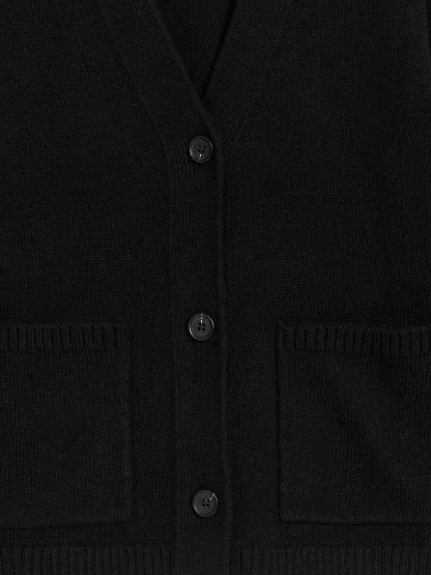 Long-sleeve cardigan with a V-neck and three-button closure. Styled with front pockets. Slim fit. The cardigan contains 100% RWS wool (TE-00047206). Products certified to the Responsible Wool Standard (RWS) contain wool fiber from farms independently certified to animal welfare and land management requirements.