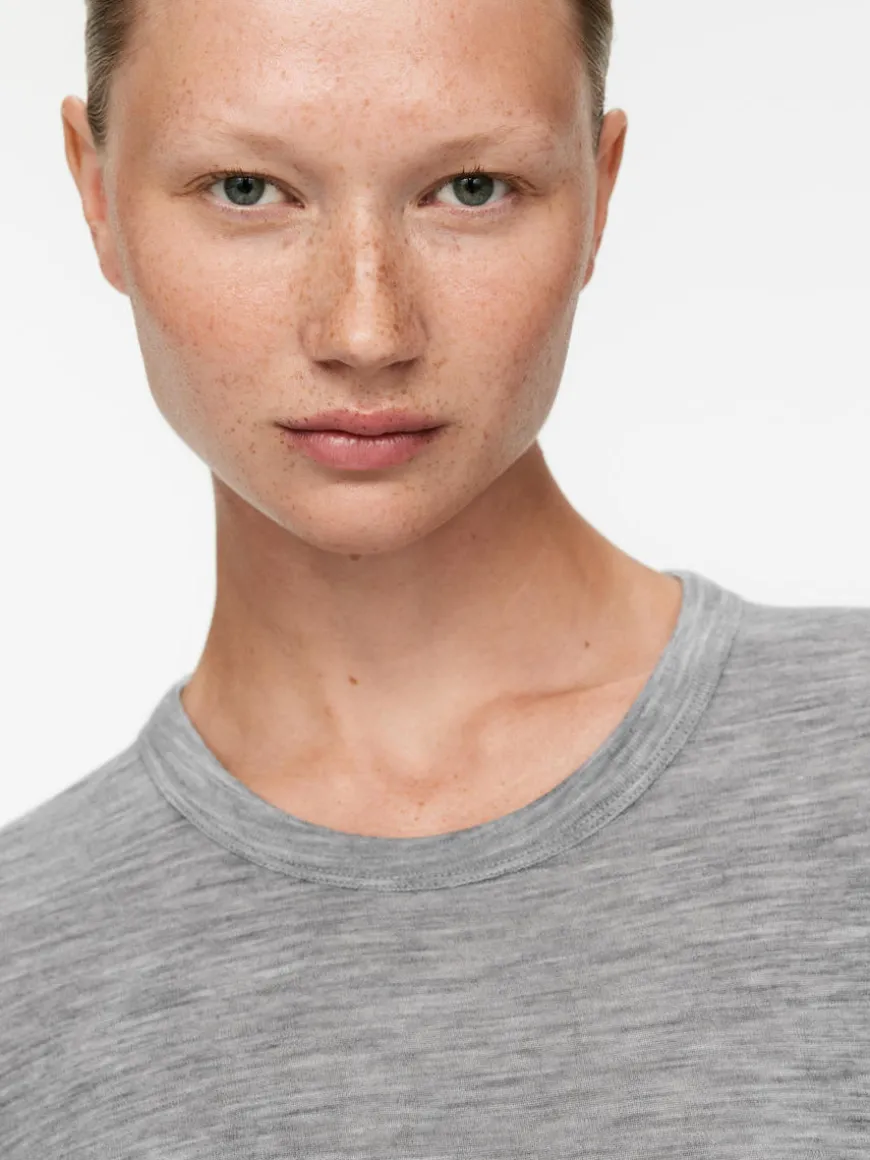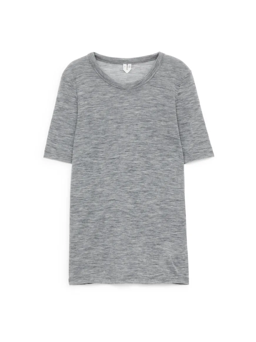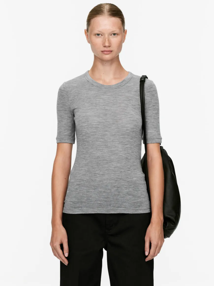 Rib-knitted T-shirt made of wool. The top contains 100% RWS wool (TE-00047206). Products certified to the Responsible Wool Standard (RWS) contain wool fiber from farms independently certified to animal welfare and land management requirements.